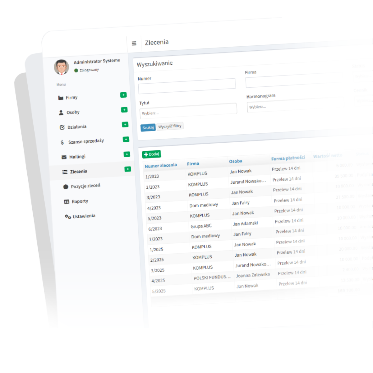 Przede wszystkim porządkuje cały proces sprzedaży i obsługi zleceń, dzięki czemu każdy etap pracy jest jasny i uporządkowany. Ułatwia także kontrolę nad realizacją kampanii reklamowych, co pozwala lepiej pilnować terminów i efektów działań. Jednocześnie ogranicza ryzyko błędów wynikających z ręcznego przekazywania informacji między działami, a przygotowywanie ofert i dokumentów staje się znacznie szybsze i bardziej powtarzalne. Wszystko to opiera się na jednym, kluczowym elemencie – dostępie do aktualnych danych w jednym miejscu, co daje pełną przejrzystość i większą kontrolę nad całym procesem.